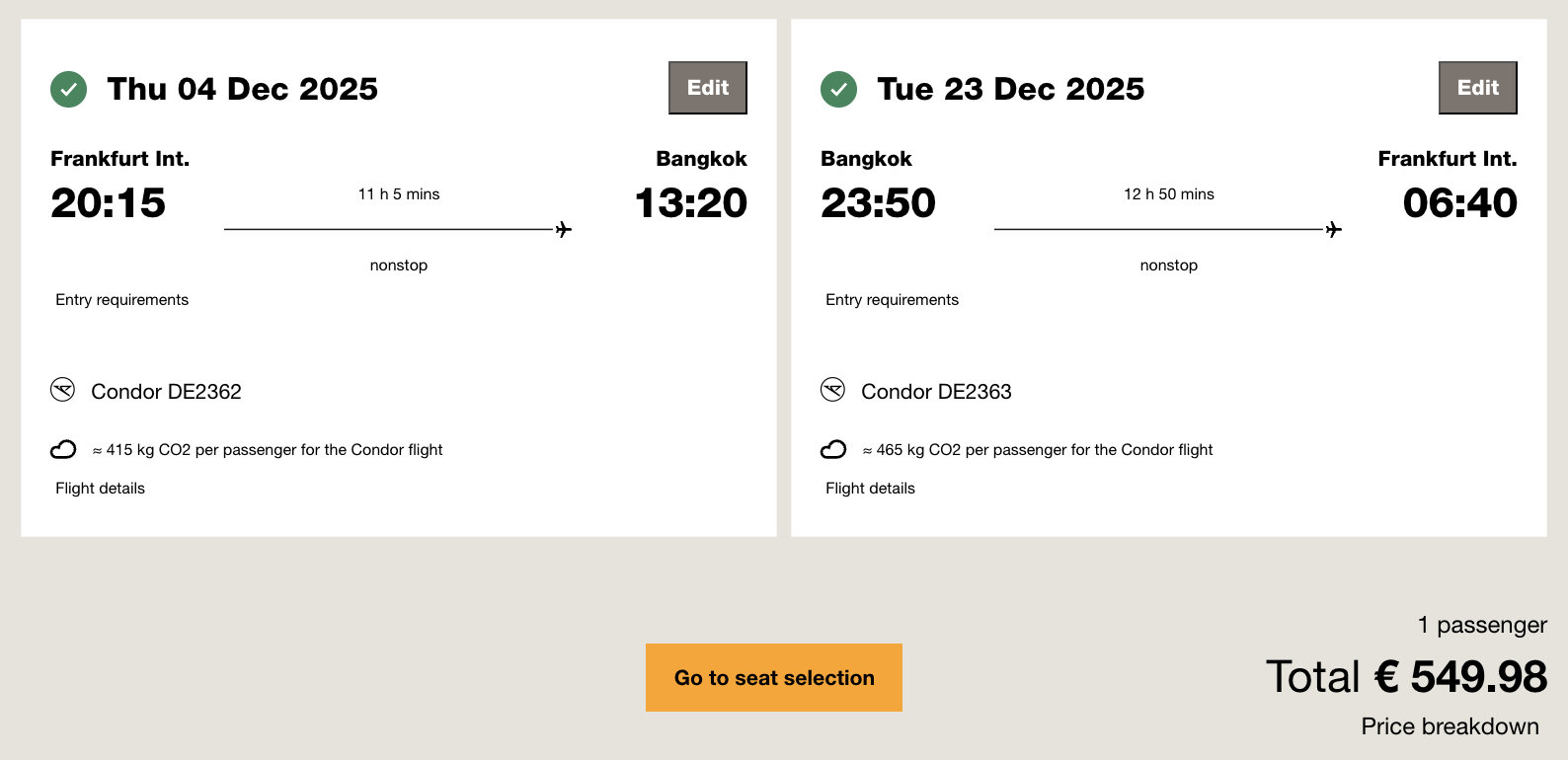 Nonstop mit der Condor nach Bangkok 🌴✈️ Ab Frankfurt 🛫 + 60 € für Gepäck 🧳 Direkt bei der Airline buchen!