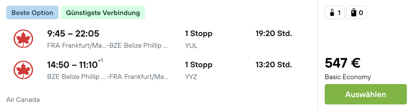 Heute stellen wir euch günstige Flüge in das unglaubliche Reiseland Belize🌴 vor: Und zwar fliegt ihr mit AirCanada und Lufthansa bereits ab 508€ Hin- und Zurück (z.B. von Berlin und Frankfurt)! Ein echt guter Preis zur besten Reisezeit!