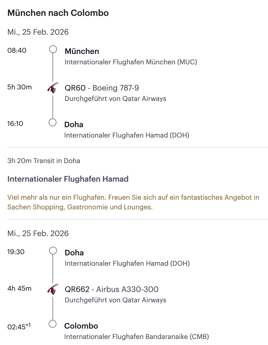 Mit Qatar Airways inkl. Gepäck nach Colombo ➡️ Ab München