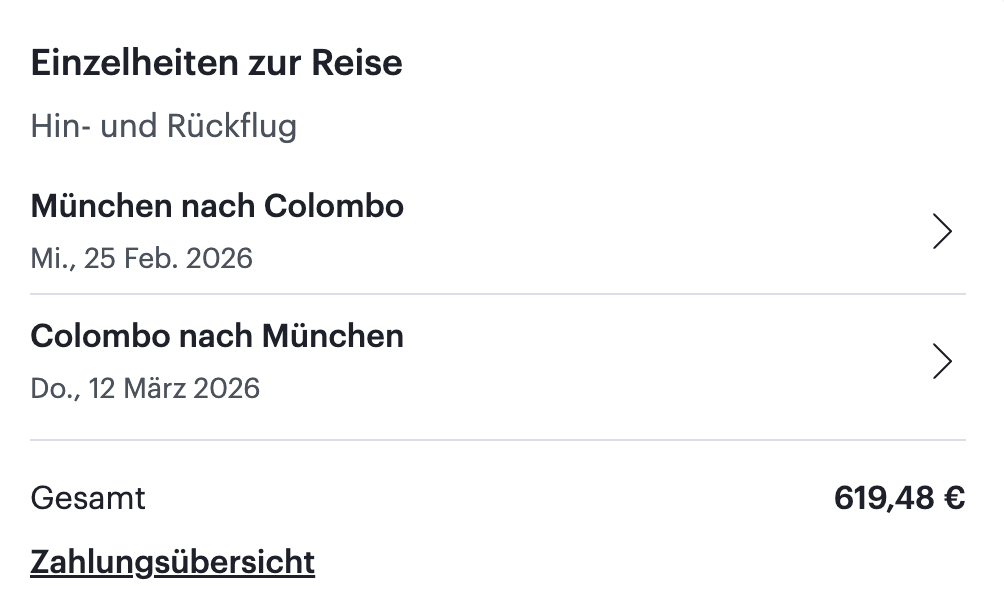 Und es wird noch besser: Qatar Airways ist eine Premium Airline und meist doch etwas teurer als die Konkurrenz. In diesem Fall bekommt ihr aktuell allerdings den Bestpreis inkl. Gepäck nach Sri Lanka! Außerdem könnt ihr sogar direkt bei der Airline buchen, über Skyscanner sind die Flüge tatsächlich sogar etwas teurer 😮