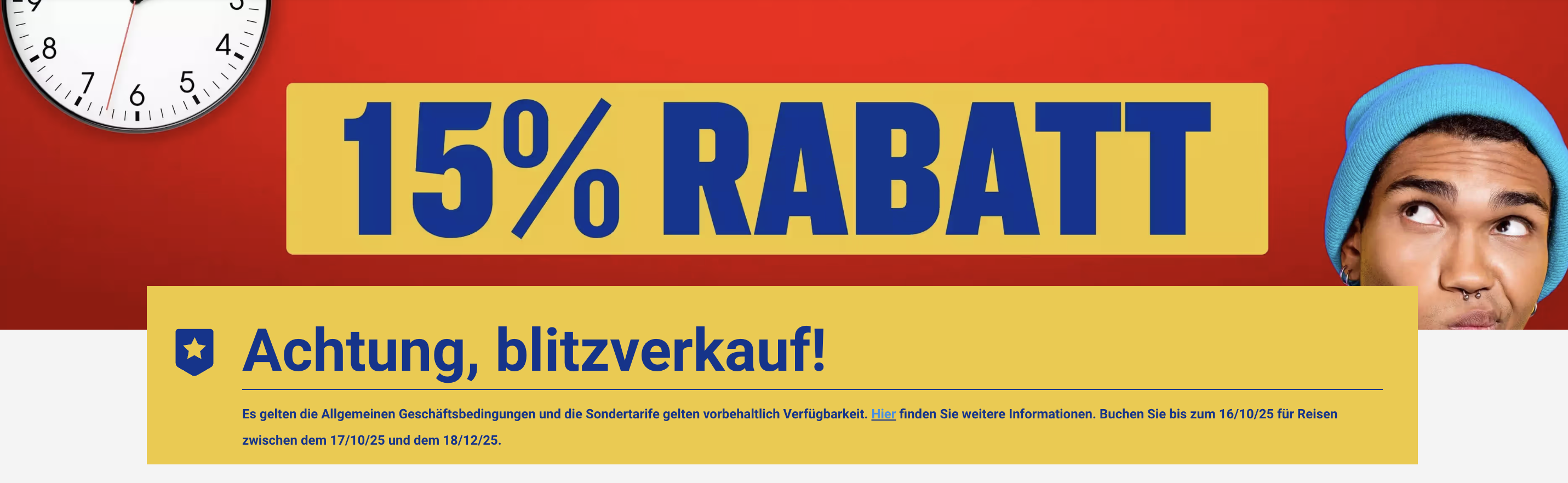 Rabattaktion für Flüge von Oktober bis Mitte Dezember 🤯 ✈️ Günstig durch Europa fliegen 👉 One-Way-Tickets ab 15€ sichern