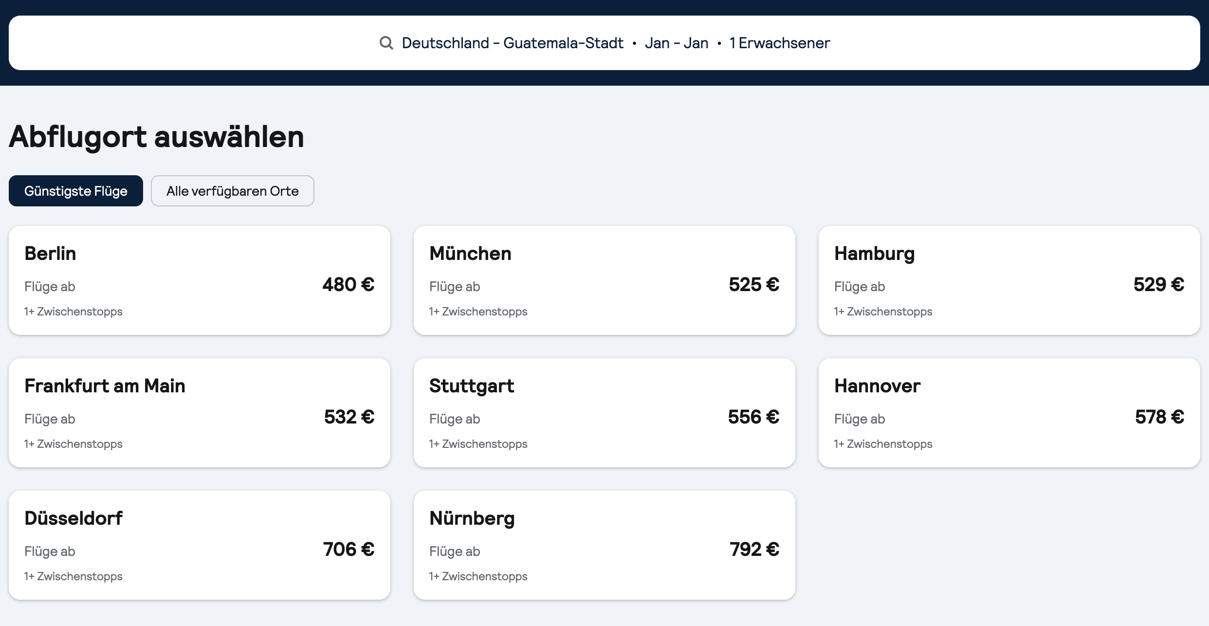 🌍 Mögliche Abflughäfen: Berlin, München, Hamburg, Frankfurt