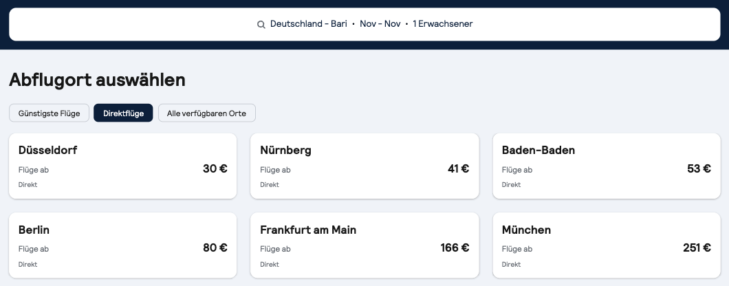 Nach Bari hin und zurück 🔥 Direktflüge ab Düsseldorf, Nürnberg, Baden-Baden & Berlin