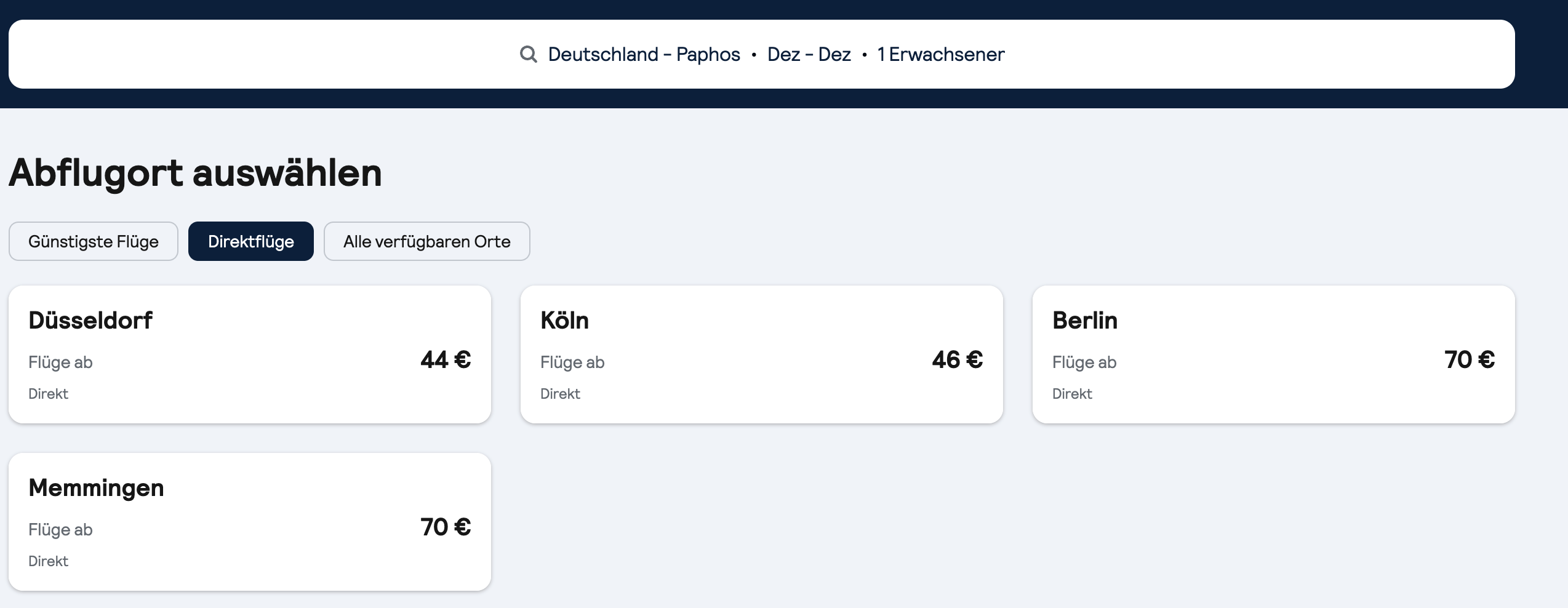 im Moment kommt ihr extrem günstig nach Zypern. Ab schon 44 € könnt ihr auf die kleine Insel fliegen! Es gibt Direktflüge z.B. ab Berlin, Düsseldorf und Memmingen uvm. Im Dezember sind die Flüge am günstigsten, allerdings fliegt ihr auch zu super Preisen in anderen Monaten! Perfekt also, um den kalten Winter in Deutschland zu entkommen und das etwas mildere Klima (bis zu 20 Grad in Paphos) zu genießen!