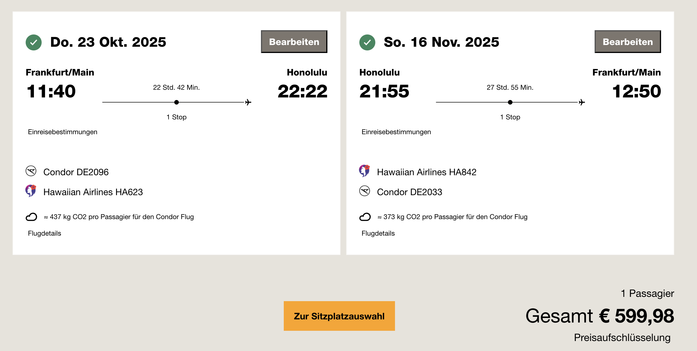 ℹ️ Die 308,99 € gelten für One-Way Flüge.