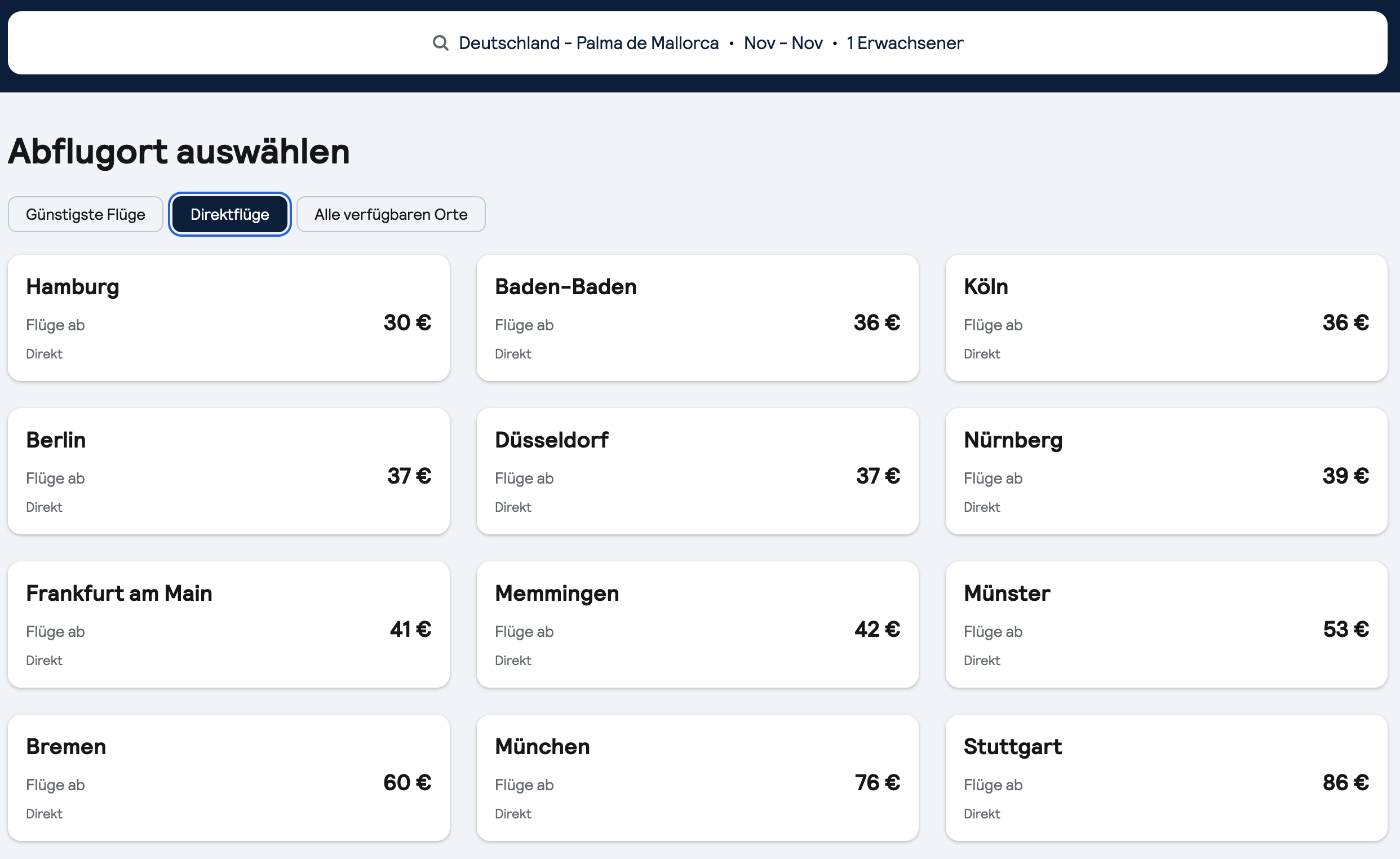 🔥 Direktflüge ab fast allen deutschen Airports ❌ Viele Strecken unter 100€ 🔥 Hin- und Rückflüge