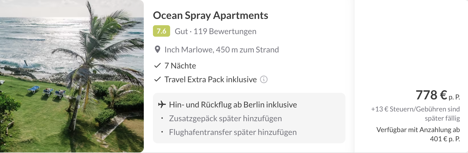 Bitte beachtet, hierbei handelt es sich um ein Angebot ohne Transfer und ohne Gepäck.