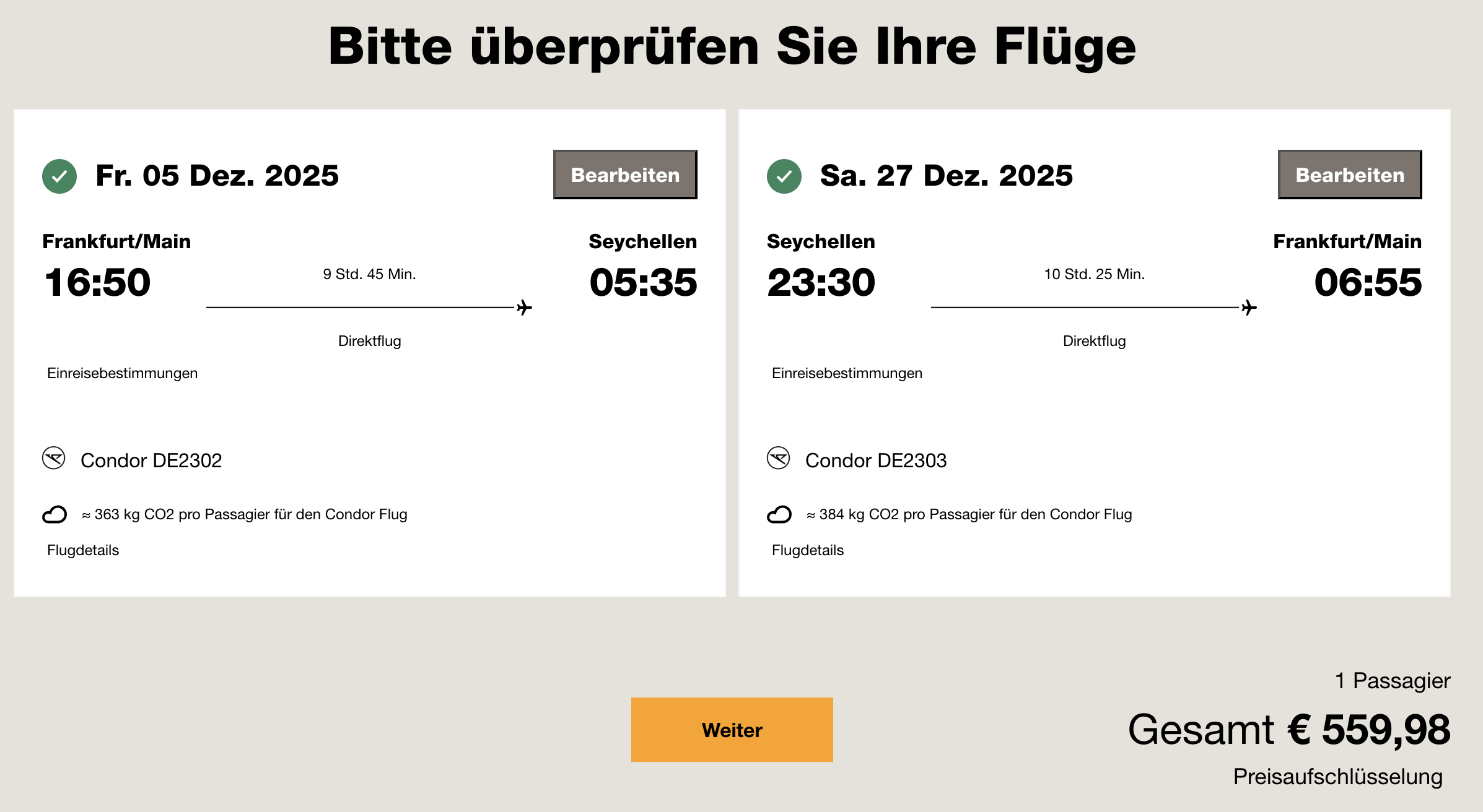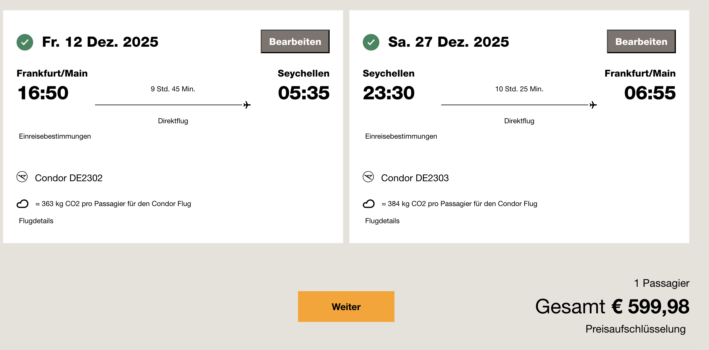 Bei uns ins es im Winter ist es ja meist richtig kalt und nass. Deswegen haben wir für euch die Lösung: Aktuell könnt ihr super günstig mit der Condor Nonstop ab Frankfurt auf die Seychellen fliegen - sogar über Weihnachten 🤩
