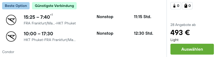 Die Condor bietet nun Nonstop-Flüge ab Frankfurt nach Phuket an. Ab nur 493 € könnt ihr Nonstop fliegen. Was ein super Preis! Los gehts zwischen September und Oktober, in den Monaten gibt es einige Daten an denen ihr fliegen könnt!