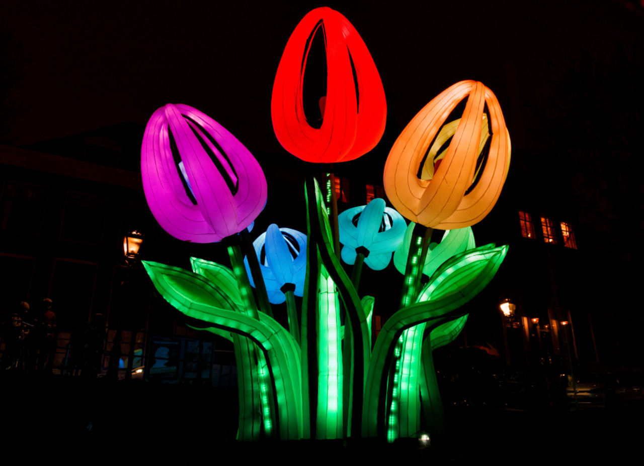 Die Lichtkunst könnt ihr euch spazierend entlang der Amsterdamer Grachten anschauen, aber für eine unvergessliche Erfahrung könnt ihr euch Tickets für eine Kanalrundfahrt gönnen!