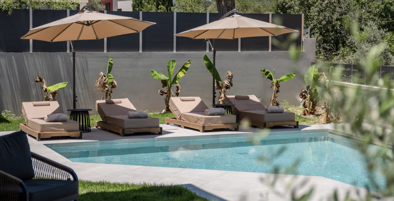 Im Außenbereich gibt es nicht nur Platz zum Sonnenbaden, dort erwarten euch auch ein Pool sowie ein gemütlicher Loungebereich mit Grillmöglichkeit. Der nächste Strand ist rund 2 Kilometer entfernt, Tavernen sind fußläufig erreichbar und bis nach Rethymno mit seinen charmanten Gassen sind es etwa 7 Kilometer.