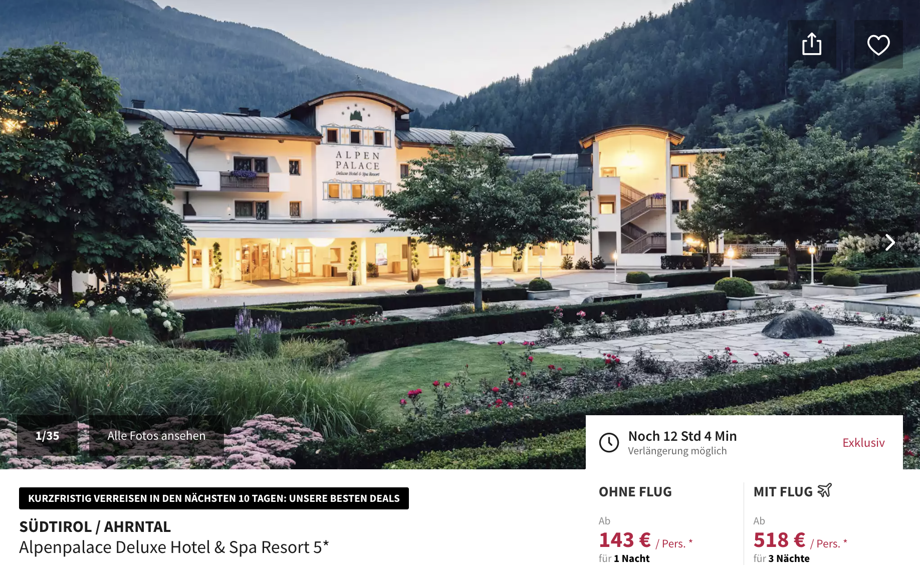 Wann habt ihr euch eigentlich zuletzt mal richtig was gegönnt? Mit diesem luxuriösen Deal geht's ins top bewertete 5* Alpenpalace Deluxe Hotel und Spa Resort in Südtirol. ⛰️