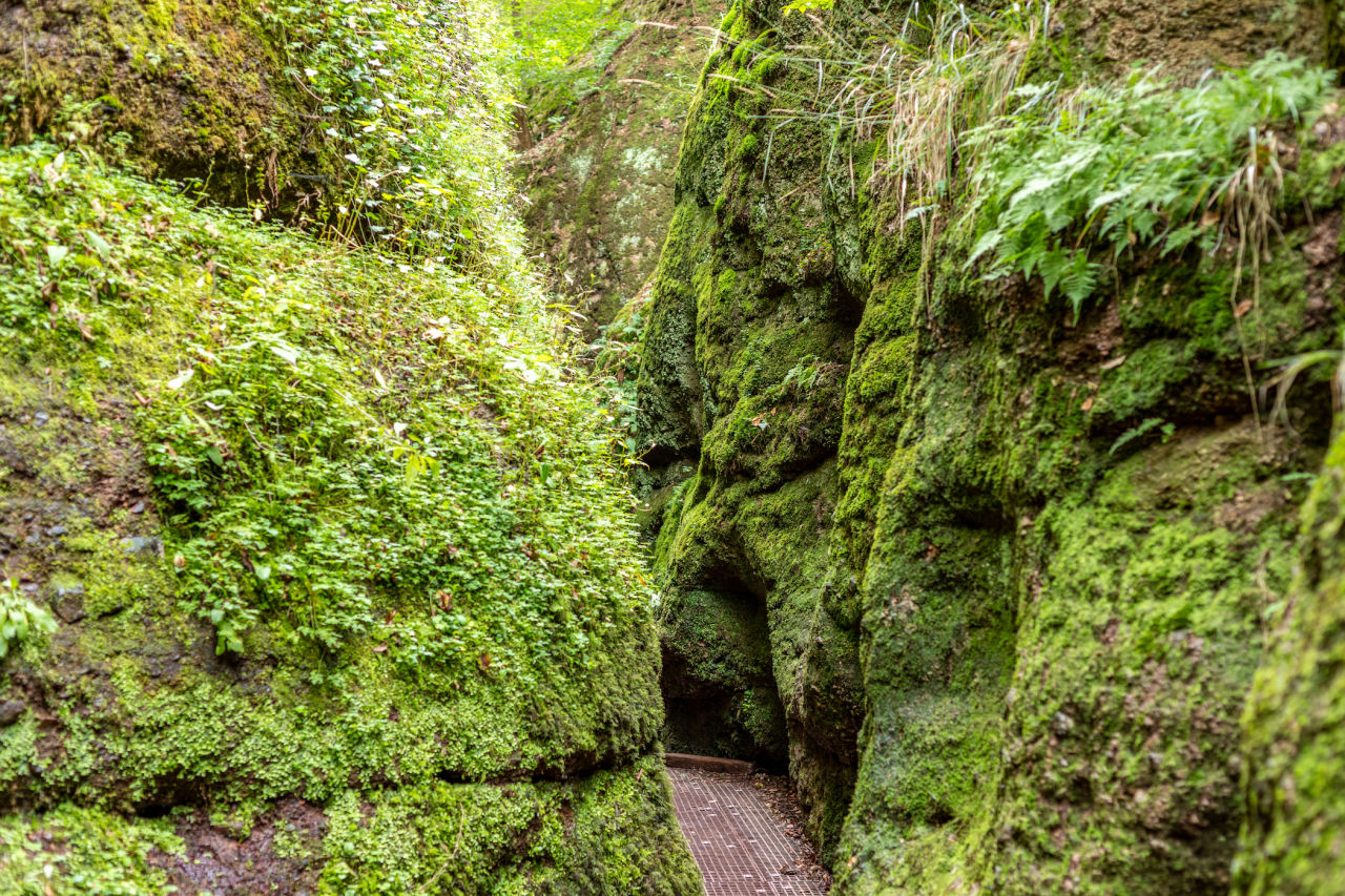 Bis zur Drachenschlucht sind es von eurer Unterkunft aus gut 2,5 Kilometer. Vor Ort gibt es zwei Wanderwege. Die Rundwanderung Drachen- und Landgrafenschlucht ist etwa 11 Kilometer lang, der Wanderweg Drachenschlucht ist 2,5 Kilometer lang, kann aber durch einen Abzweig zur Wartburg verlängert werden. Beide Wanderungen starten von der Haltestelle Mariental im Süden Eisenachs. Bei eurer Wanderung geht es durch die Klamm, vorbei an moosbewachsenen Felsen, während unter euch ein Bach fließt.