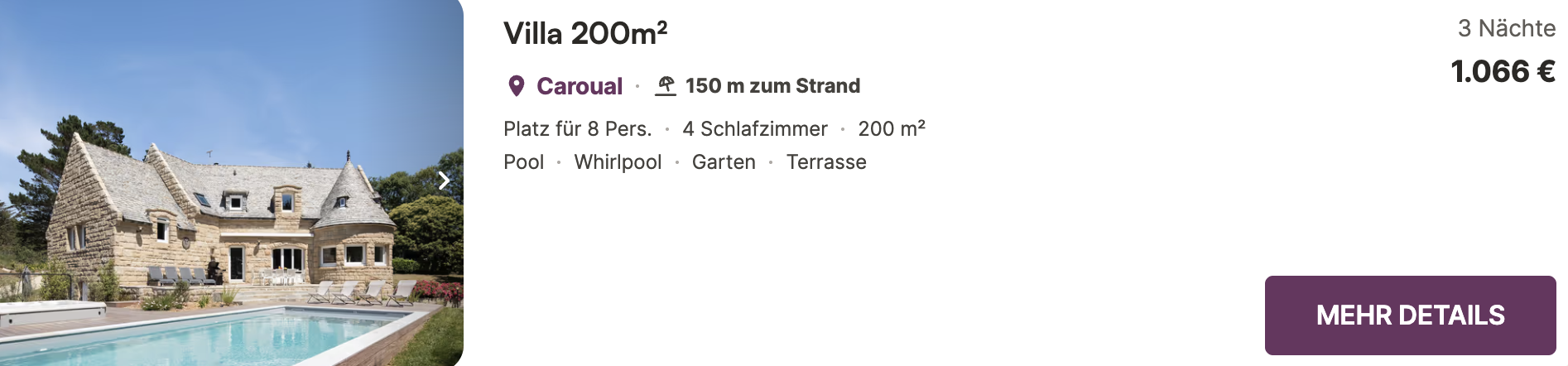 Auf satten 200 m² findet ihr 4 Schlafzimmer und 3 Badezimmer – perfekt für bis zu 8 Personen. Unser Preisbeispiel bezieht sich genau darauf: das lange Wochenende ab nur 133 € pro Person – und das im September, sodass ihr noch die ganze Zeit den Pool und Whirlpool genießen könnt. 🤩