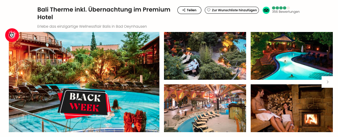 Besonders cool: Der Bestpreis ist an vielen Daten inklusive Wochenenden verfügbar. Obendrein könnt ihr das top 4* Hotel Vienna House Easy Bad Oeynhausen zum Bestpreis wählen und seid quasi direkt neben der Bali Therme.