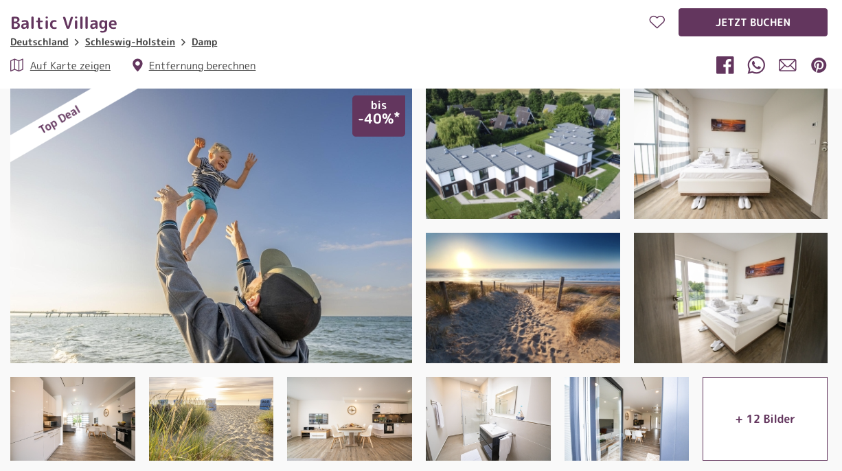 Die Ferienhäuser im Baltic Village Damp messen ca. 83qm und zählen zwei Schlafzimmer, einen Wohn-Essbereich sowie eine ausgestattete Küche, ein Bad mit Sauna und einen Gartenbereich. Bis zum Ostseestrand sind es um die 750 Meter, ebenso zu Cafés, Restaurants und Einkaufsmöglichkeiten.