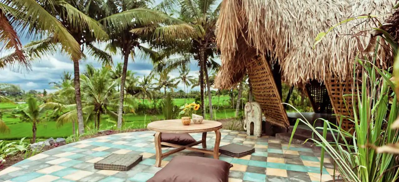 Diese Bambus-Öko-Hütte findet ihr inmitten von Reisfeldern, im schönen Ubud. Ubud ist ein sehr belebter Teil Balis, der euch endlose kulinarische Möglichkeiten sowie Unternehmungen, wie beispielsweise den berühmten Sacred Monkey Forest, bietet. Da die Bambus-Hütte jedoch etwas abseits gelegen ist, habt ihr es hier trotzdem schön ruhig.