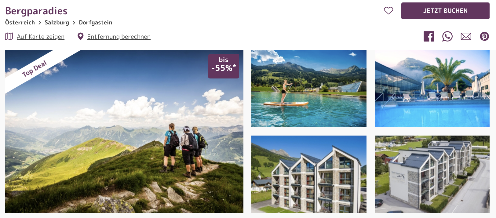 Ihr könnt nämlich drei Nächte im Hotel Bergparadies in Dorfgastein verbringen und habt nicht nur die All Inclusive light-Verpflegung (u.a. mit unbegrenzt alkoholfreien Getränken, Bier, Wein sowie Kaffee und Tee von 16 bis 21 Uhr), mit dabei, sondern auch den täglichen Eintritt in die Alpentherme Gastein - dieser alleine kostet sonst bereits fast 200€ pro Person für 4 Tage!