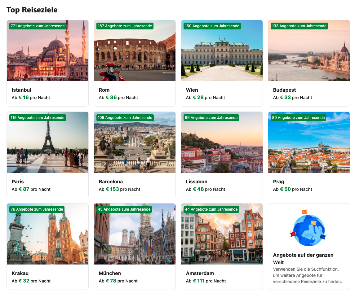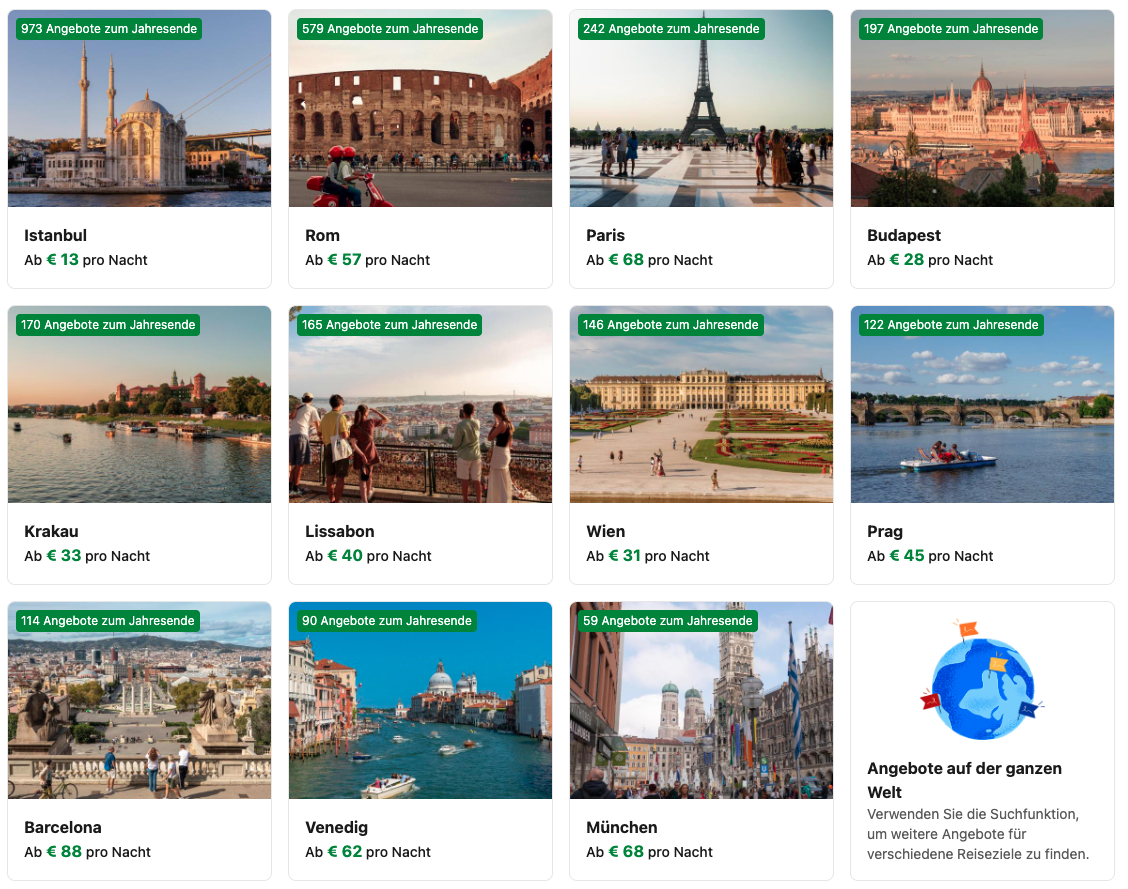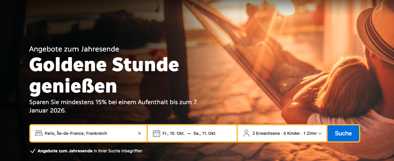 Spart mindestens 15% bei vielen Hotels weltweit für Reisen bis Januar 2026