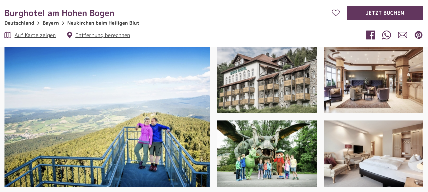 Das Burghotel am Hohen Bogen befindet sich etwas abseits des Zentrums von Neukirchen am Heiligen Blut im Bayerischen Wald. Es zählt 125 Zimmer und bietet unter anderem eine große Bade- und Wellnesslandschaft (ca. 2.000 m²) mit verschiedenen Saunen, Sanarium, Whirlpool und Dampfbad.