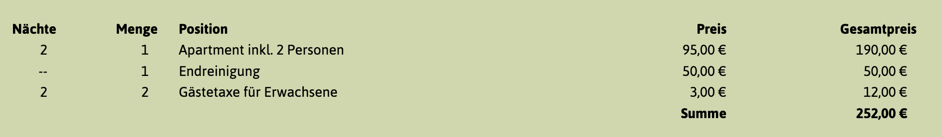 Endreinigung im Wert von € 50,00 pro Apartment und Aufenthalt inklusive