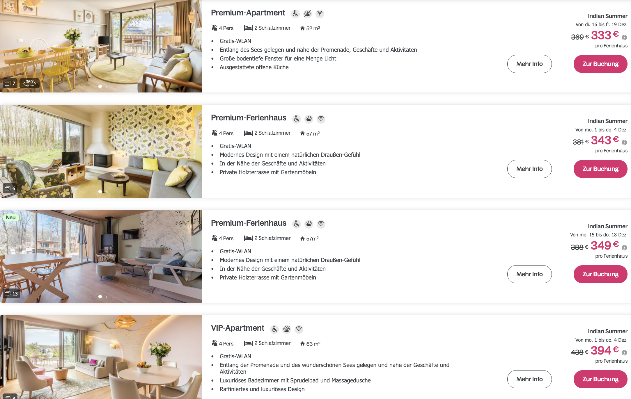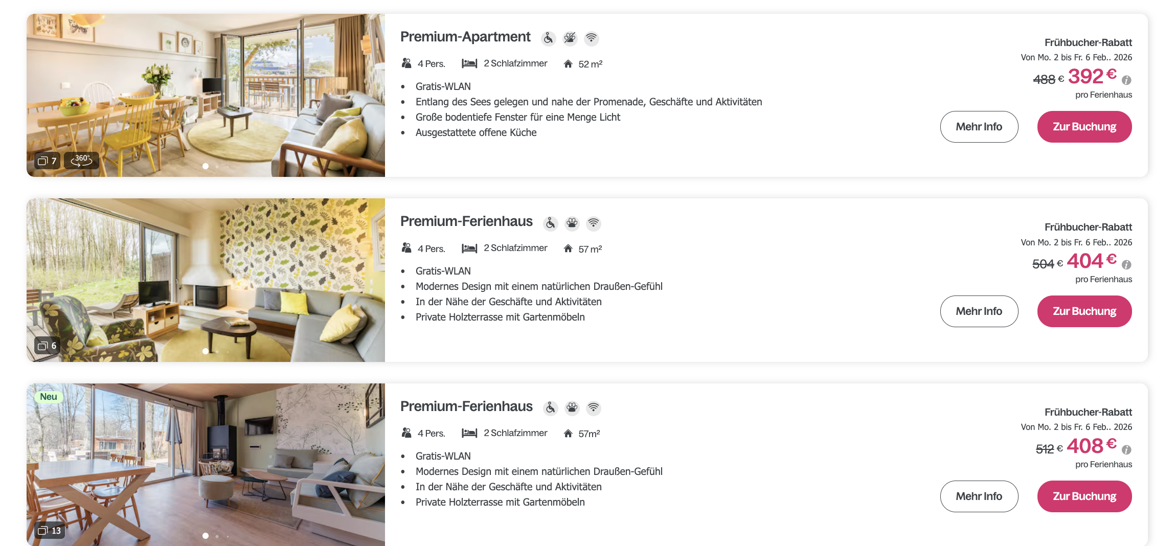 Im Filter könnt ihr ganz einfach den Park, Reisezeitraum und Personenzahl anpassen, um das perfekte Ferienhaus für euch zu finden. Zudem könnt ihr nach dem günstigsten Angeboten sortieren. 😎