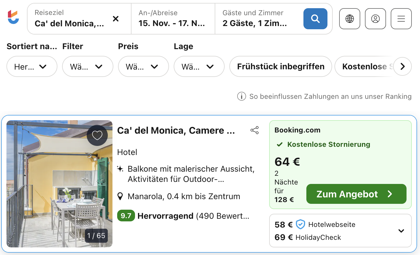 Passend dazu haben wir euch eine Unterkunft mitten in einem der Sehnsuchtsorte herausgesucht: In Manarola. Hier zahlt ihr für 2 Nächte übers Wochenende gerade mal 58€ - und das einfach nur, weil ihr ein paar Wochen später als alle anderen hinreist, neben zur Nebensaison.