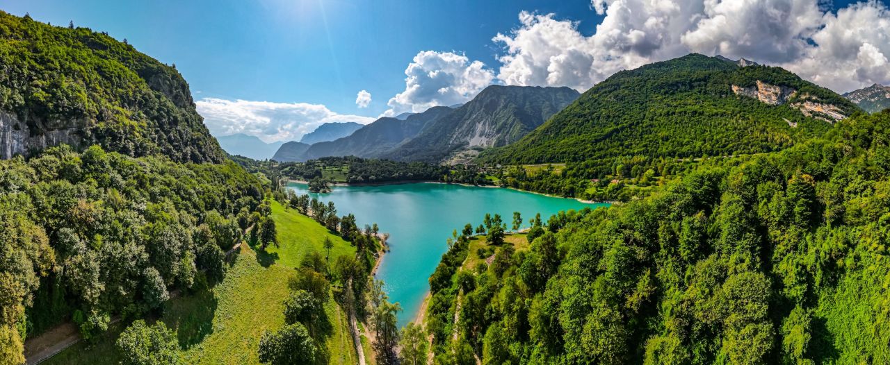Nur rund 15 Minuten mit dem Auto von Riva del Garda im Norden des Gardasees befindet sich der Lago di Tenno, oder auch Tennosee. Der nahezu kreisrunde Bergsee begeistert mit leuchtend türkisem Wasser und mittelalterlichen Dörfern. Außerdem könnt ihr ihn bequem zu Fuß in knapp einer Stunde umrunden und zwischendurch für eine Abkühlung ins klare Wasser hüpfen.