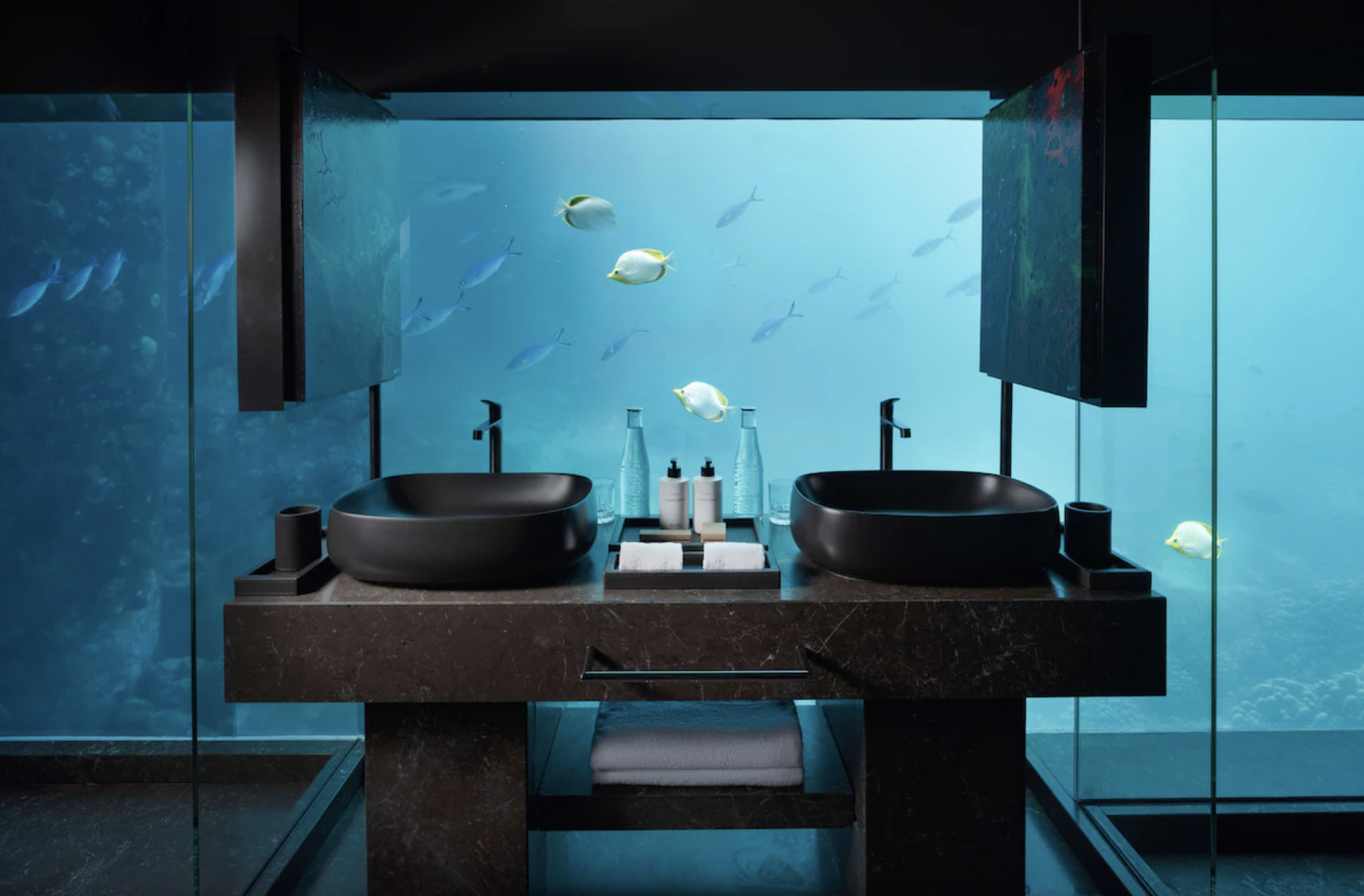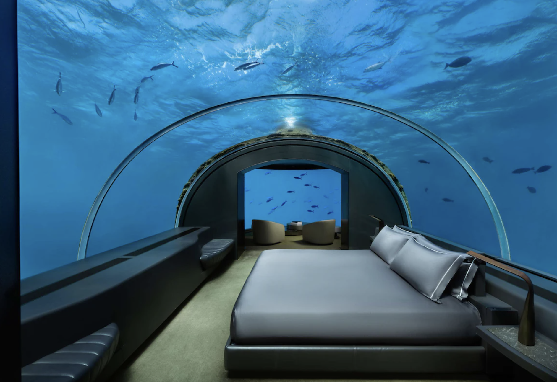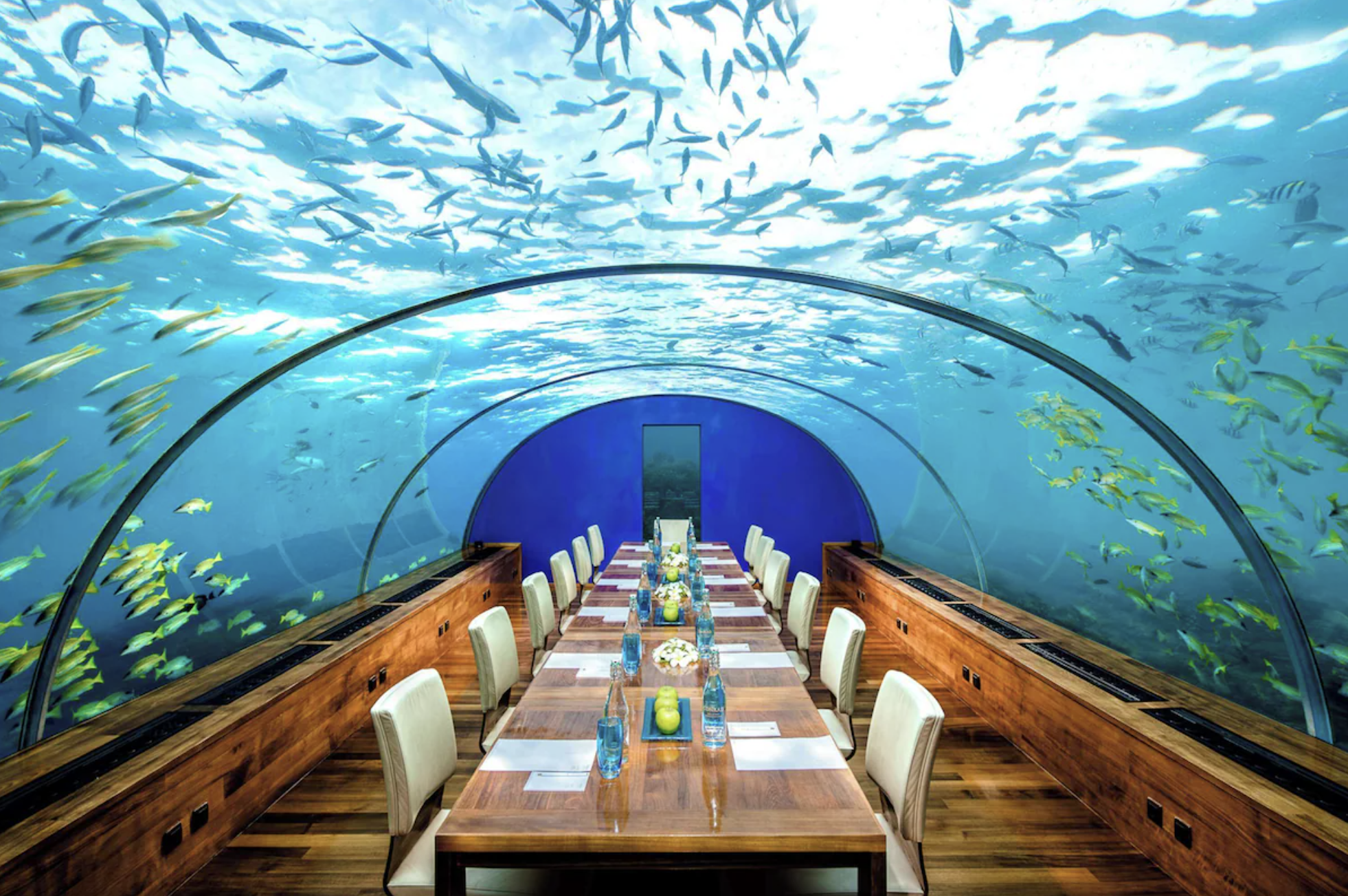 Besonders machen das Luxusresort unter anderem das Unterwasserestaurant Ithaa Undersea Restaurant sowie die Residenz "Muraka", deren Highlights das unter dem Wasser liegende Hauptschlafzimmer samt Bad und Wohnbereich ist. Bodentiefe Fenster sorgen dafür, dass ihr von nahezu allen Ecken und Winkeln einen Blick auf die Meeresbewohner um euch herum werfen könnt.