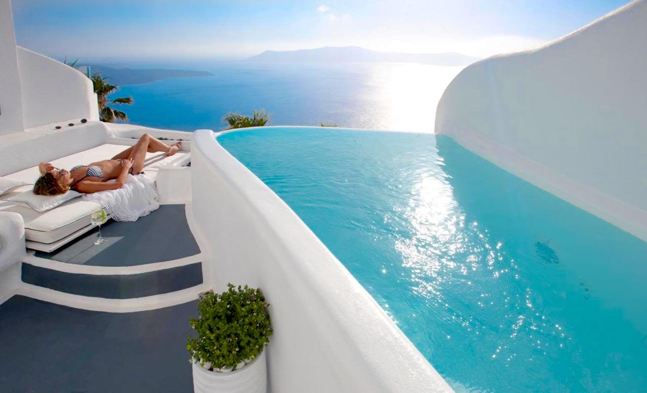Dieses 5*-Hotel liegt auf der wunderschönen Insel Santorini und bietet nicht nur einen herrlichen Ausblick, sondern auch einen Infinity-Pool, einen Jacuzzi und ein Spa. Die Zimmer sind luxuriös und außergewöhnlich gestaltet, einige haben sogar einen Privatpool!