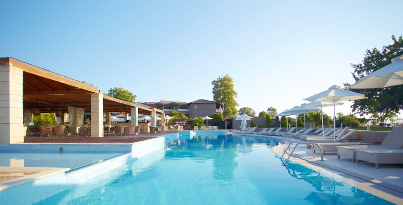 Das 5* Dion Palace Resort & Spa liegt direkt am Strand der Olympischen Riviera und verfügt über 4 Pools – definitiv genug Platz zum Relaxen. Ihr habt nicht nur einen genialen Ausblick auf den Olymp, sondern seid auch nur ein paar Schritte vom weißen Sandstrand entfernt. Auch das Interieur überzeugt mit modernem Ambiente und luxuriösen Einrichtungen. Außerdem steht euch ein Spa-Bereich mit Hallenbad, Thermalpool, Sauna und Hamam zur Verfügung.