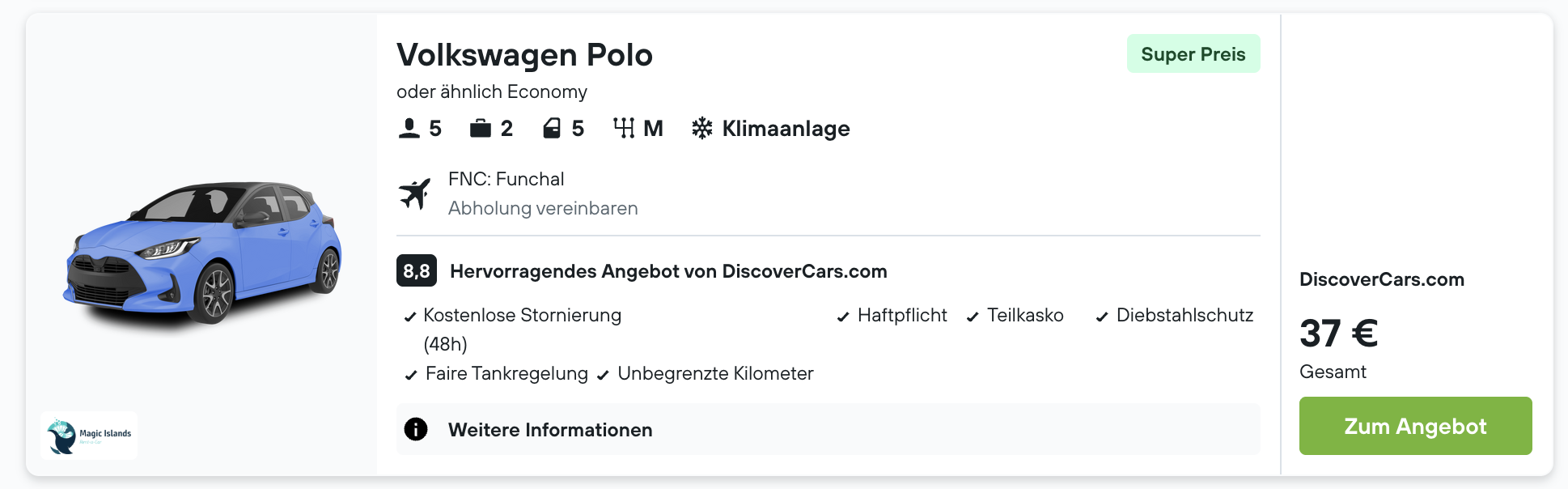 Und Mietwägen bekommt ihr für den Zeitraum sogar schon ab 37€, also 18,50€ pro Person!!