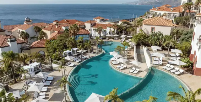 Die modernen Zimmer sind elegant eingerichtet, viele davon mit Meerblick. In mehreren Gourmetrestaurants und Bars genießt du feinste Küche und Getränke, während das große Spa für Tiefenentspannung sorgt. Hier erwartet dich echtes 5-Sterne-Feeling, kombiniert mit der entspannten Atmosphäre Madeiras. Außerdem wurde es 2025 mit den Travellers' Choice Award 2025 ausgezeichnet.