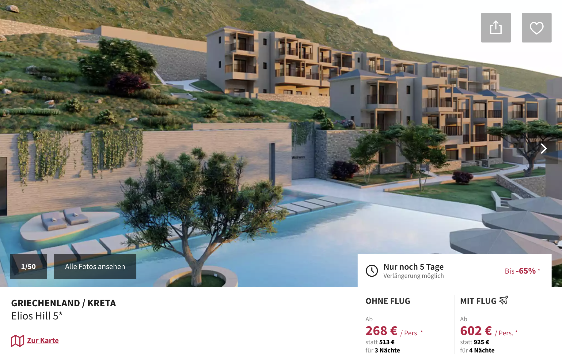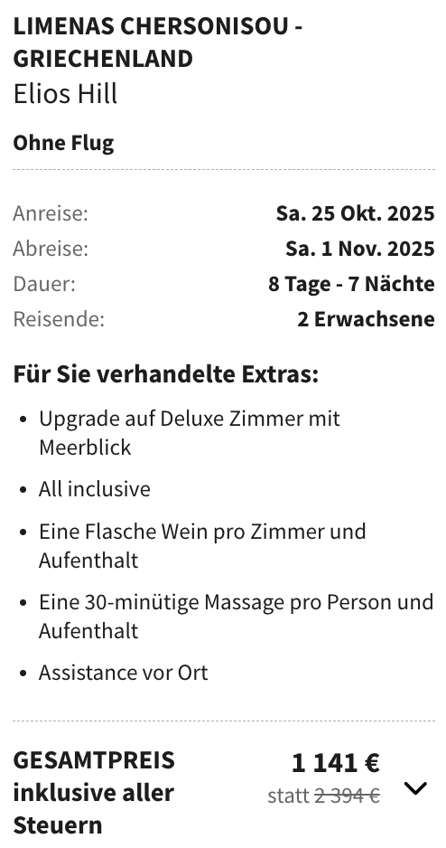 Reist im noch angenehmen Oktober für eine Woche auf die größte griechische Insel und zahlt ab 570€ pro Person bei einer Reise zu zweit. ☀️