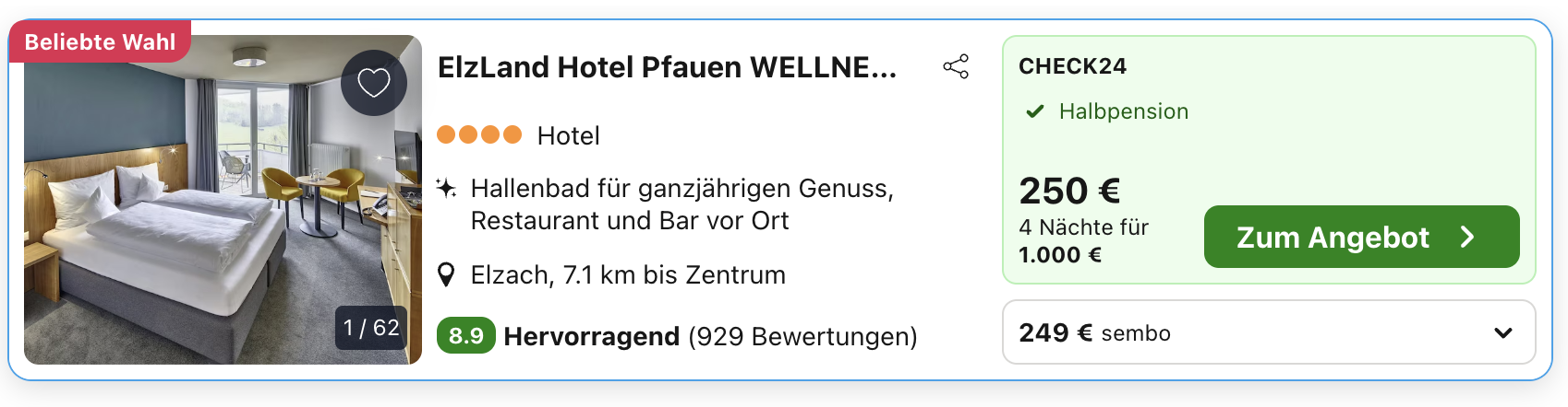 Reist ihr an unserem Beispieldatum, zahlt ihr zu zweit insgesamt 666 €. Auf anderen Buchungsportalen zahlt ihr dagegen 1000 €. 😮