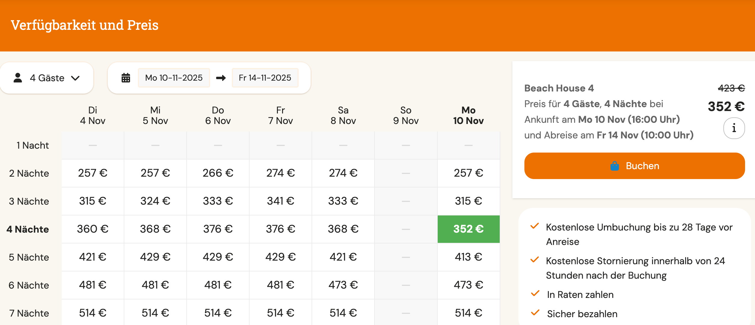 352€ / 4 Personen = 88€ p.P.