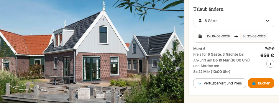 Weiter unten haben wir euch unsere Favoriten für ein langes Wochenende (3 Nächte) in den Niederlanden verlinkt.👇 Los geht es im Ferienhaus ab 93€ pro Person, wenn ihr zu sechst anreist (Gesamtpreis 561€ statt 646€).