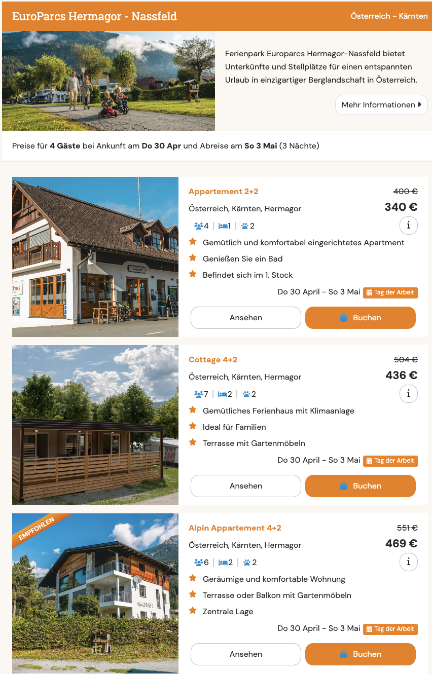 3 Nächte im Appartement bekommt ihr schon ab 340€ für 4 Personen.👇