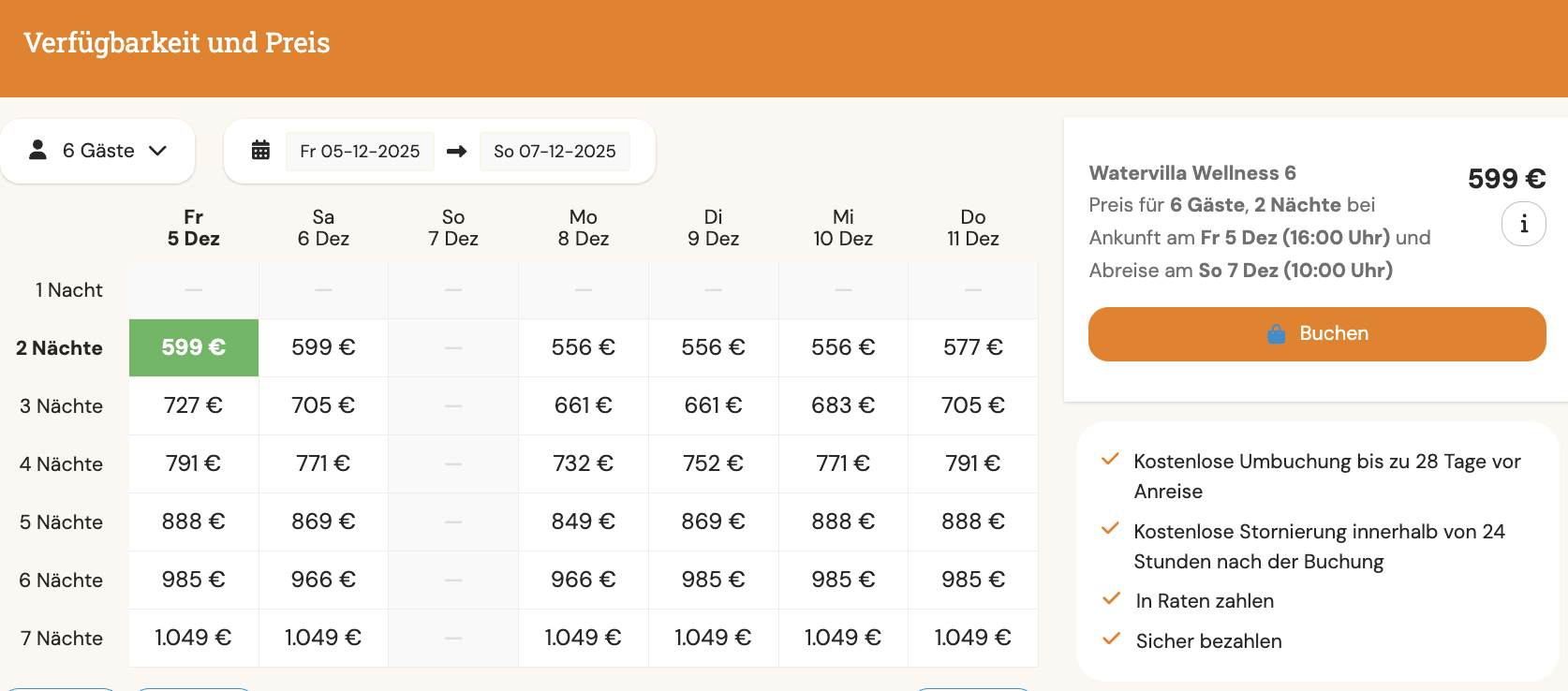 599€ : 6 Personen = 99€ pro Person