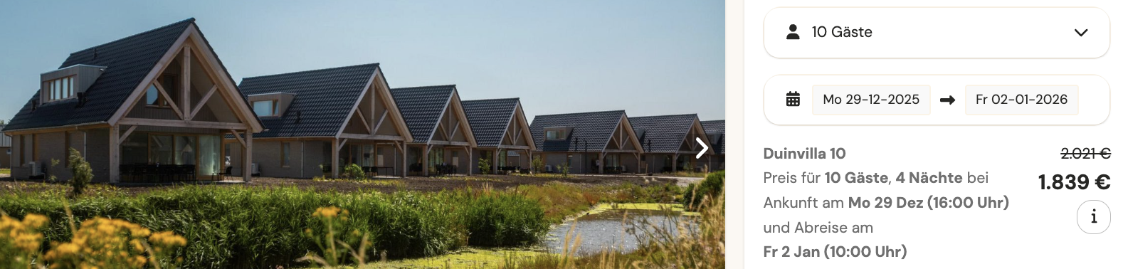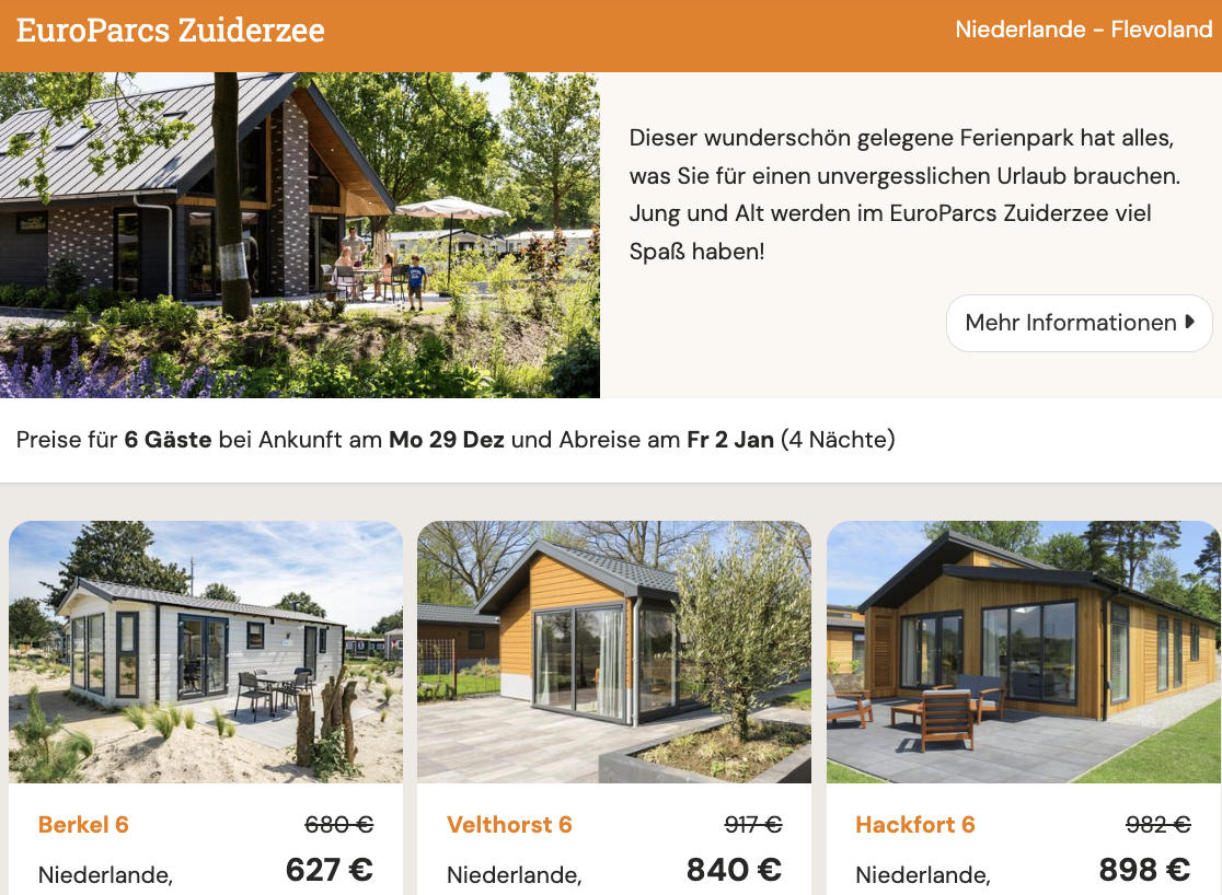 ALLE ANGEBOTEOb in kleiner oder großer Runde – bei EuroParcs findet ihr über Silvester noch vergleichsweise günstige Ferienhäuser in tollen Ferienparks in den Niederlanden, Belgien, Luxemburg, Deutschland und Österreich. 💕