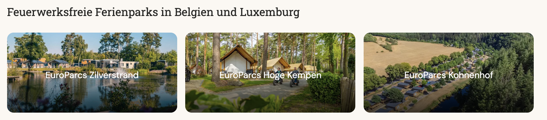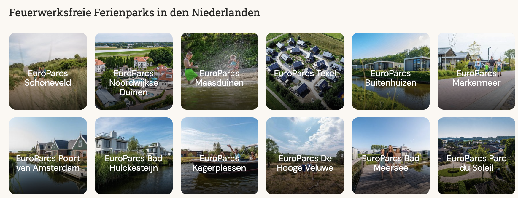 FEUERWERKSFREIE FERIENPARKSOb in kleiner oder großer Runde – bei EuroParcs findet ihr über Silvester noch vergleichsweise günstige Ferienhäuser in tollen Ferienparks in den Niederlanden, Belgien, Luxemburg, Deutschland und Österreich. 💕