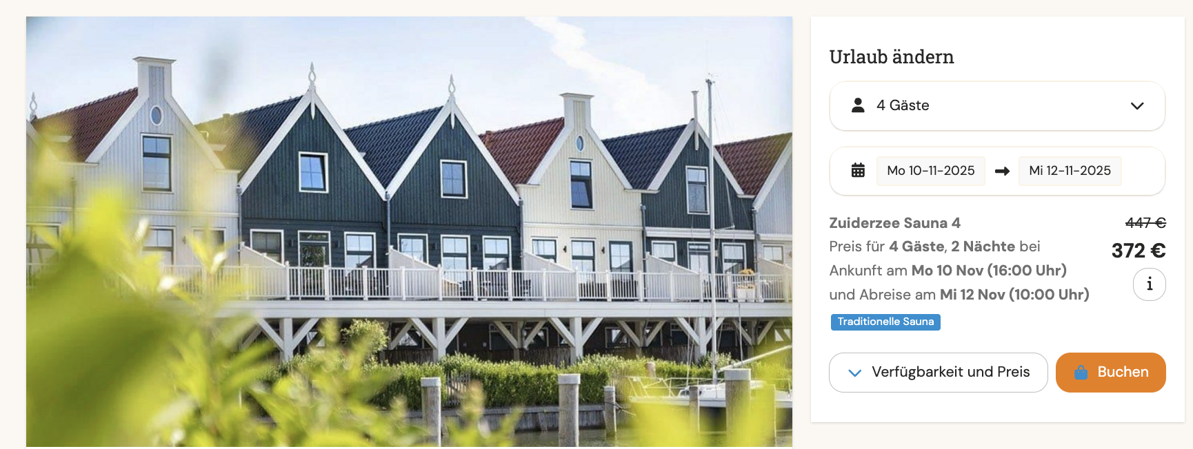ℹ️ Nach der Weiterleitung könnt ihr das Datum, die Personenanzahl und eure Wünsche wie Sauna, Hallenbad etc ganz einfach im Filter anpassen.