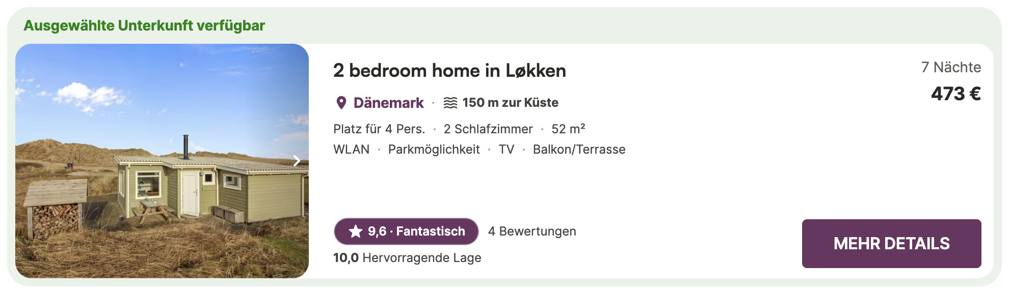 👉 1 Woche (5. bis 12. September 2026) im Ferienhaus am Meer mit 4 Personen für 473 €: