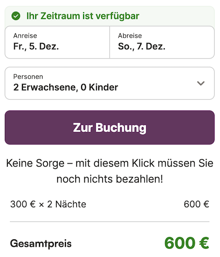 Ein Wochenende im Dezember kostet euch ab 300 € pro Person. Im Erdgeschoss des Hauses findet ihr eine voll ausgestattete Küche mit Essbereich und einen Wohnbereich. Im Obergeschoss befindet sich das Schlafzimmer mit Doppelbett sowie das Bad mit Dusche.