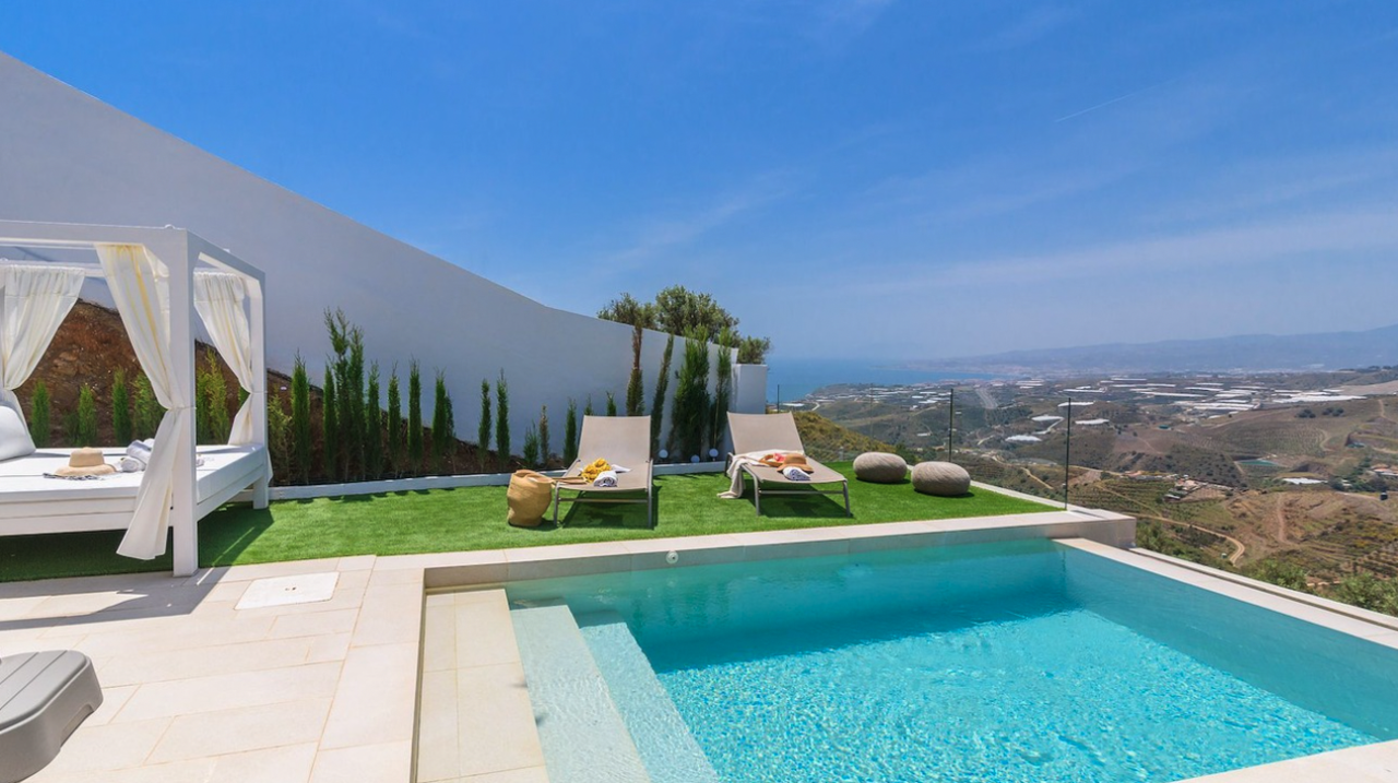 Das Haus befindet sich, wie oben bereits erwähnt, in Andalusien. Bis nach Torrox sind es etwa 4km. Vom Haus aus genießt ihr einen tollen Blick auf das Umland und sogar auf das Meer. Im Außenbereich erwarten euch Sonnenliegen, ein Bali-Bett, Essbereich im Freien und ein Pool nur für euch. Gegen Aufpreis könnt ihr auch den Außen-Whirlpool nutzen.
