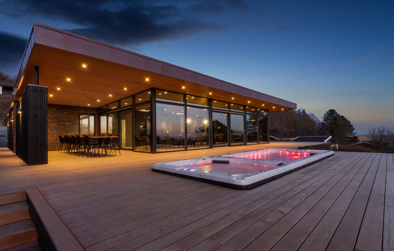 Das Designerhaus bietet euch modernste, hochwertige Einrichtung. Auf 180 qm und in insgesamt sechs Schlaf- und zwei Badezimmern habt ihr richtig Platz! Durch die Verglasung könnt ihr vom Wohnraum aus einen tollen Blick auf das Meer und die hügelige Landschaft genießen. Im Außenbereich findet ihr zwei Whirlpools, eine Sauna, Tischtennis und ein Trampolin