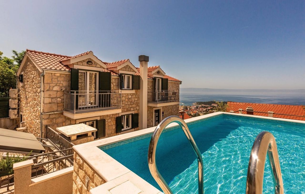 Von der Poolterrasse aus habt ihr neben dem Meerblick auch eine Panoramaaussicht auf die Stadt Makarska und das Gebirge mit dem Naturpark Biokovo - hier könnt ihr auch gut wandern gehen! Die Stadtmitte und mehrere Strände sind nur 1 km entfernt.