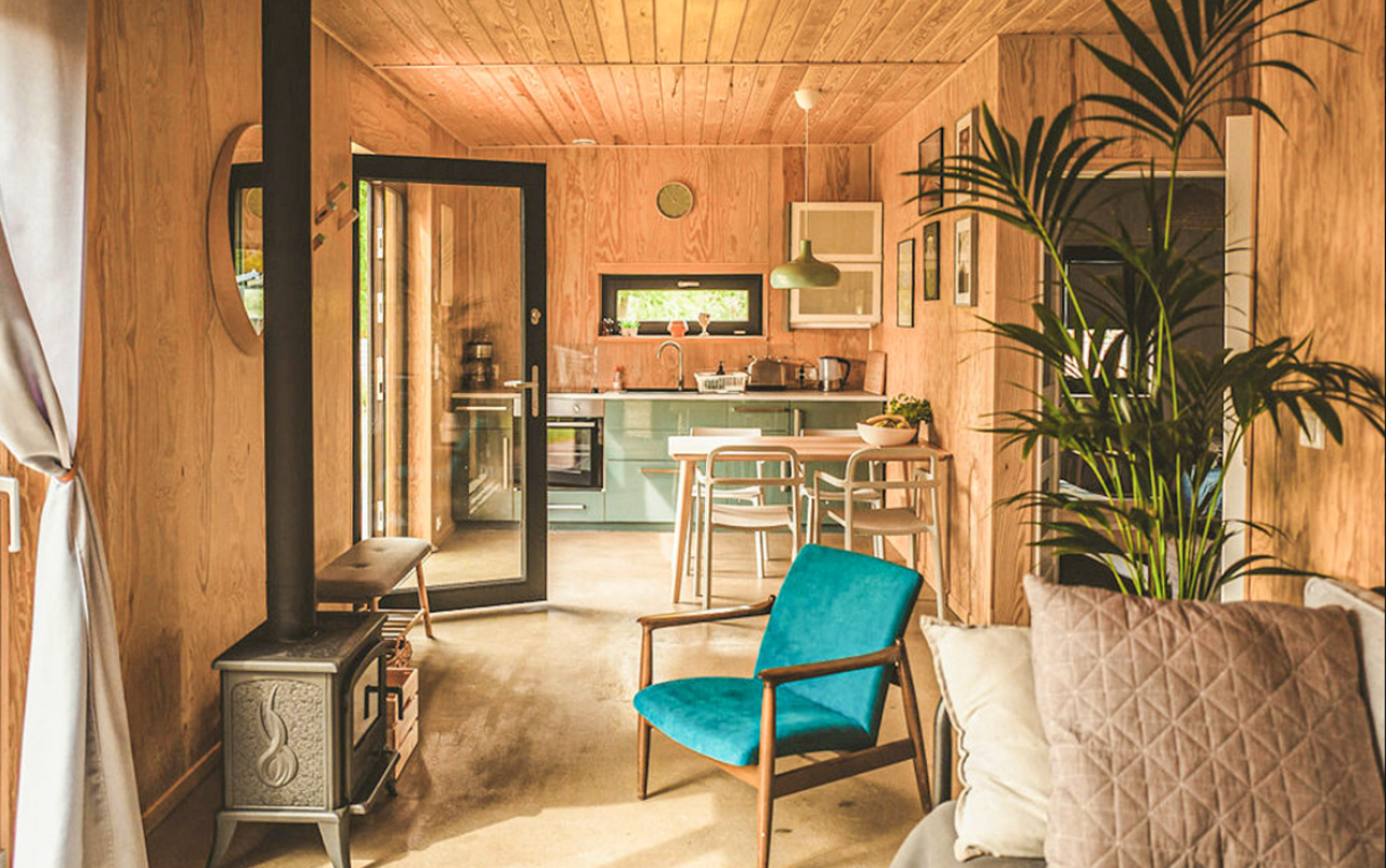 das modern eingerichtete Holzhaus befindet sich bei Nowe Warpno, unweit der deutschen Grenze. Die Unterkunft liegt ruhig und nur einen kurzen Spaziergang vom Meer entfernt. Im Inneren erwarten euch zwei Schlafzimmer, ein Bad mit Dusche und ein Raum mit Küche, Sitz- und Essecke, in dem auch ein kleiner Kamin zu finden ist. Zum Haus gehört außerdem ein großer Außenbereich mit verschiedenen Sitzmöglichkeiten.
