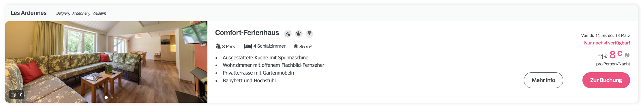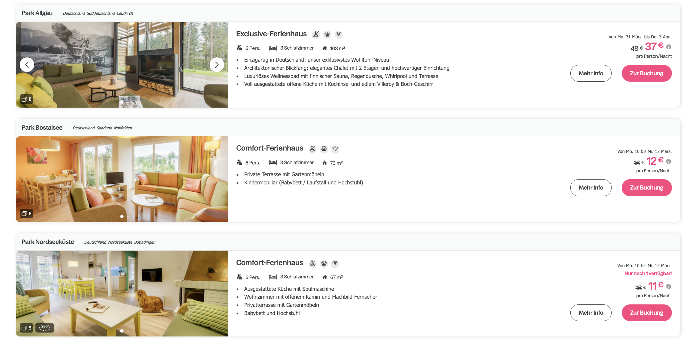 ⚠️ Nach der Weiterleitung könnt ihr einfach nach den günstigsten ober beliebtesten Angeboten filtern, einen Ferienpark auswählen und die Personenzahl entsprechend anpassen. 🧑🧑🧒🧒
