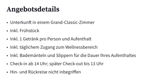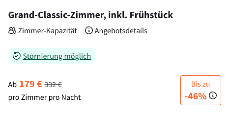 Auch im Preisvergleich weiß der Deal zu überzeugen. Woanders zahlt ihr für den Beispieltermin am 28. Dezember mal eben 260€, bei Secret Escapes jedoch nur 179€. Dementsprechend habt ihr eine Ersparnis von mehr als 31%!